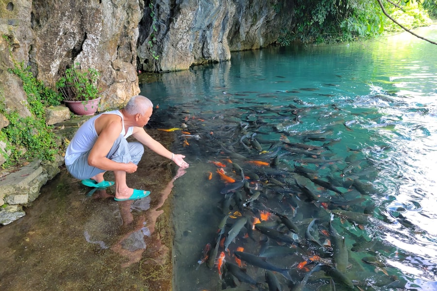 Suối cá thần Cẩm Thủy (Thanh Hóa) nằm dưới chân núi Trường Sinh, nổi tiếng với hàng nghìn con cá bơi lội trong làn nước trong vắt. Đàn cá được người dân tôn thờ, gắn liền với truyền thuyết về thần rắn mang lại may mắn. Dù cá đông đúc, nước suối vẫn không hề có mùi tanh, tạo nên cảnh quan huyền bí và cuốn hút. Đây không chỉ là điểm du lịch thiên nhiên độc đáo mà còn mang đậm giá trị văn hóa, tâm linh.
